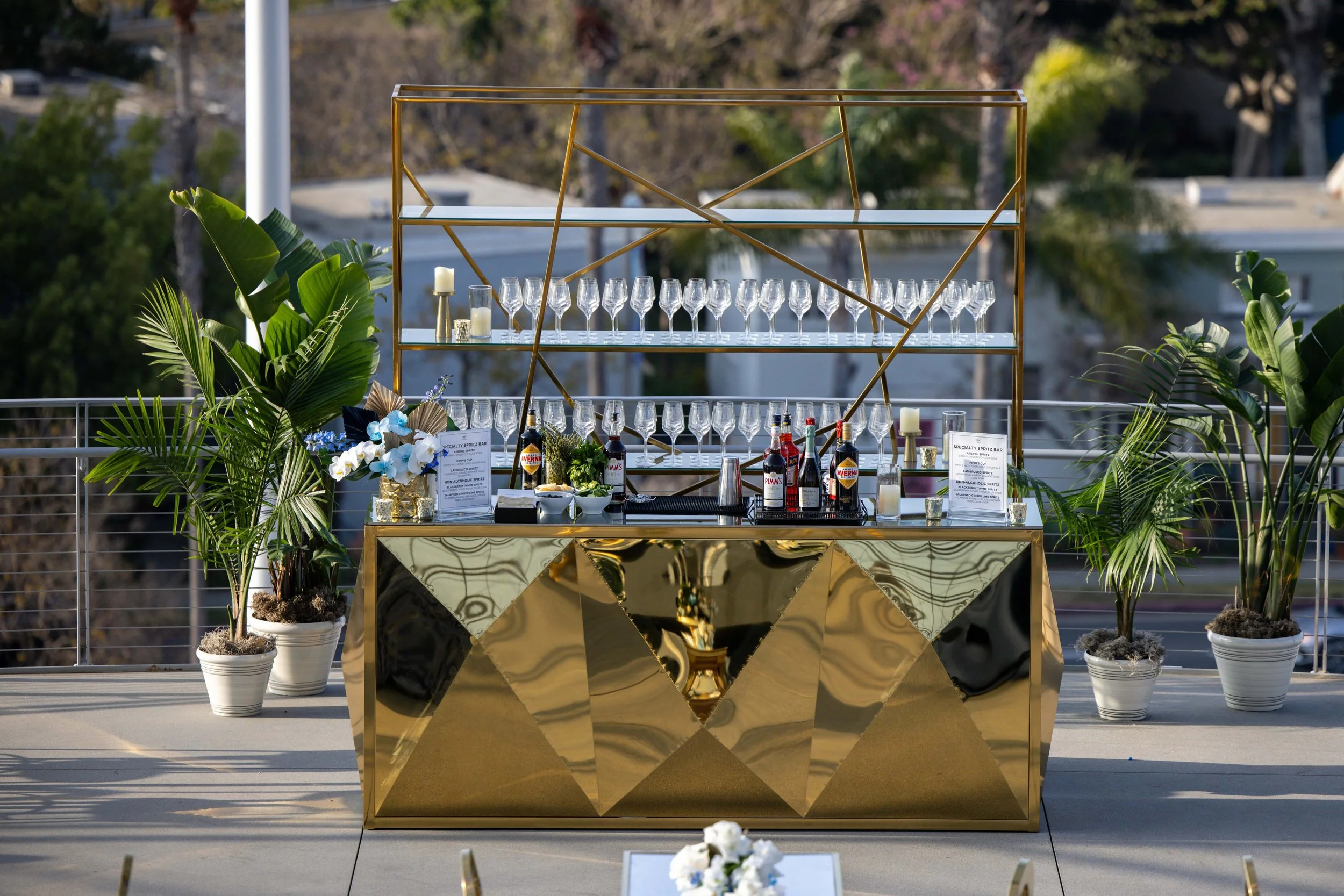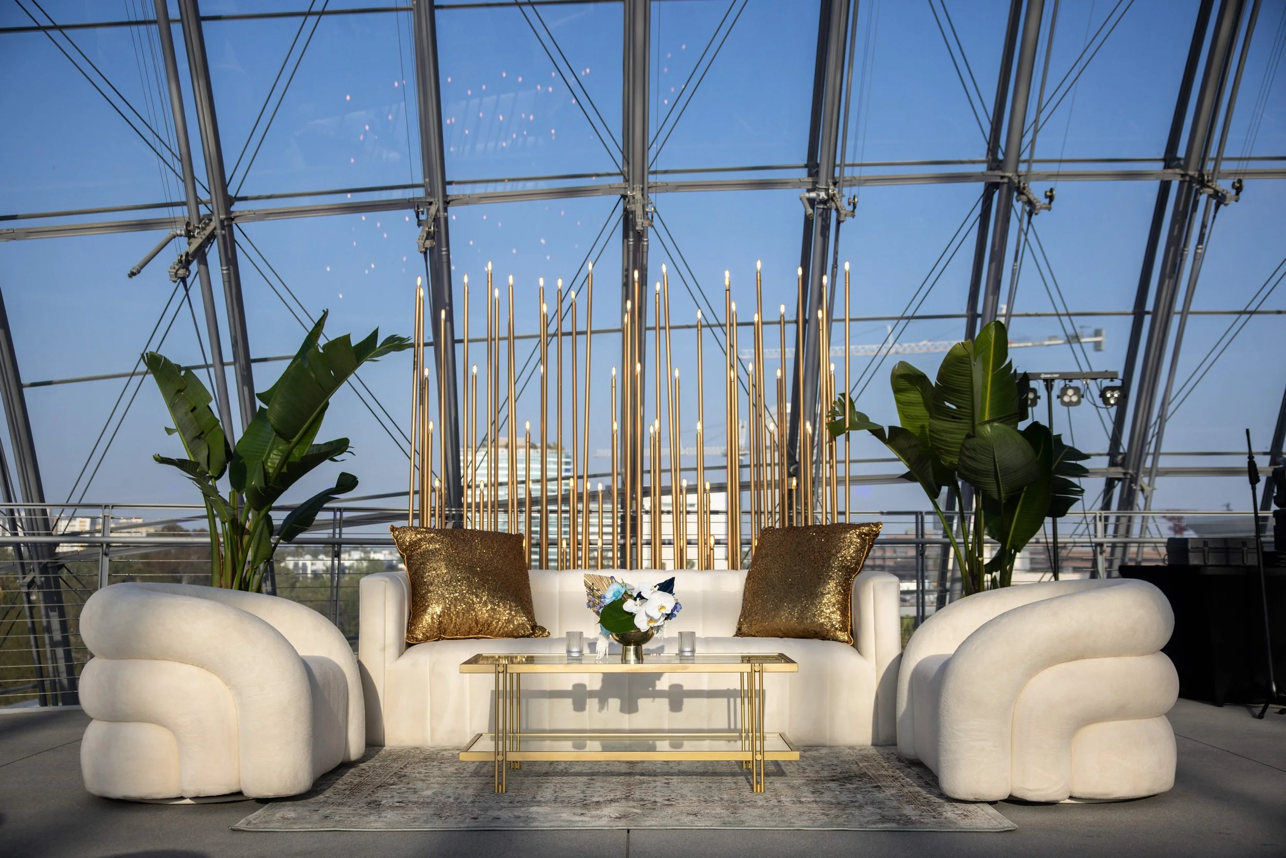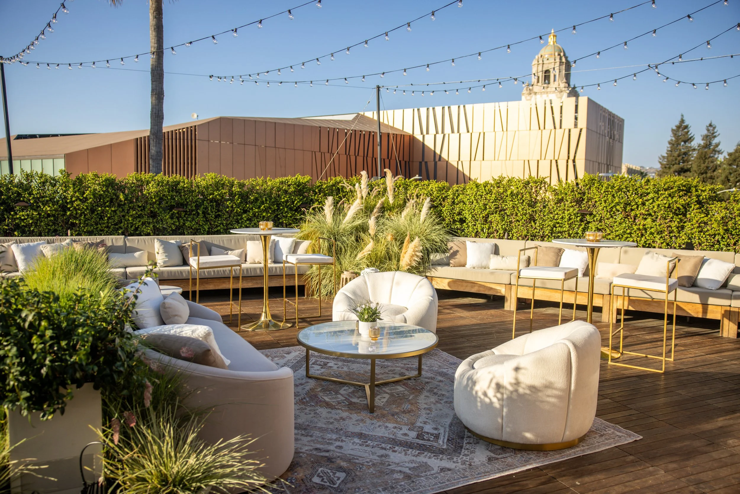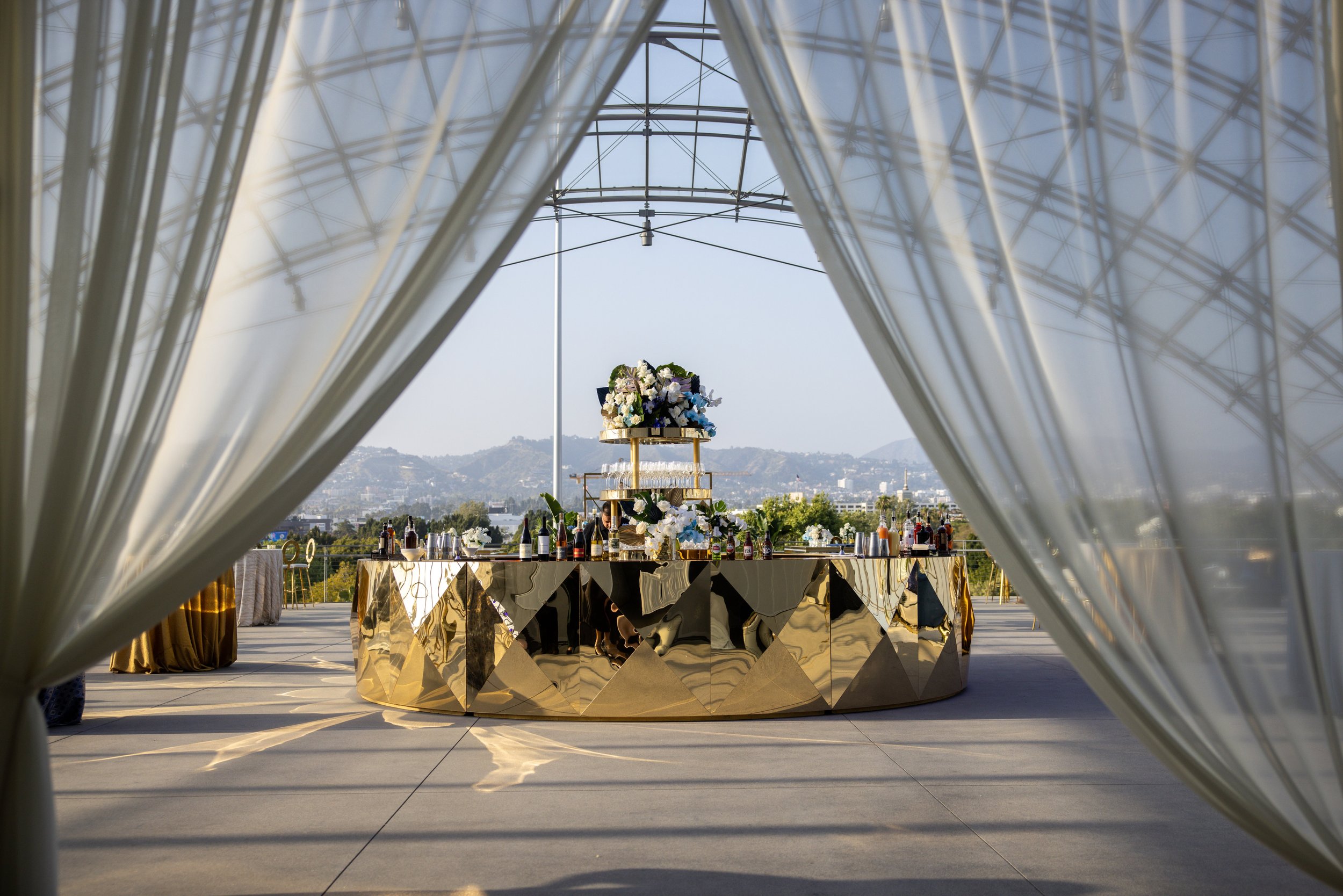 40-person rooftop buyout at Funke with florals, live musical entertainment, roaming caviar service, and coordinated guest transportation.